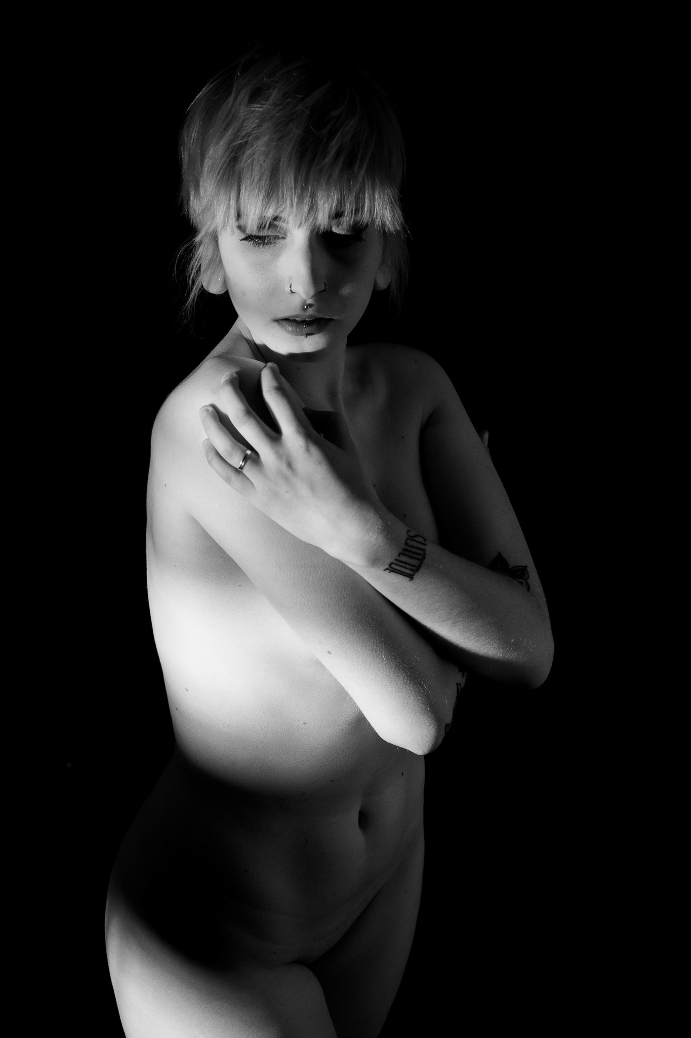 La mia è una ricerca espressiva la cui centralità è legata al corpo come mezzo di comunicazione e unico punto di osservazione senza distrazione del contesto. La comunicazione vive nella dualità dei protagonisti: soggetto e fotografo. Da una parte, una sorta di body art virtuale in cui il soggetto ritratto usa il corpo e le sue parti per comunicare e descrivere, forte di una gestualità intima e privata, mentre dall’altra il fotografo diventa filtro nella trasmissione del messaggio facendo scorrere solo parte, attimi, della performance del soggetto. La luce diventa lo strumento che l’ombra e il fotografo utilizzano per scolpire la fisicità del corpo. Il corpo femminile come scultura, paesaggio e mezzo di comunicazione.