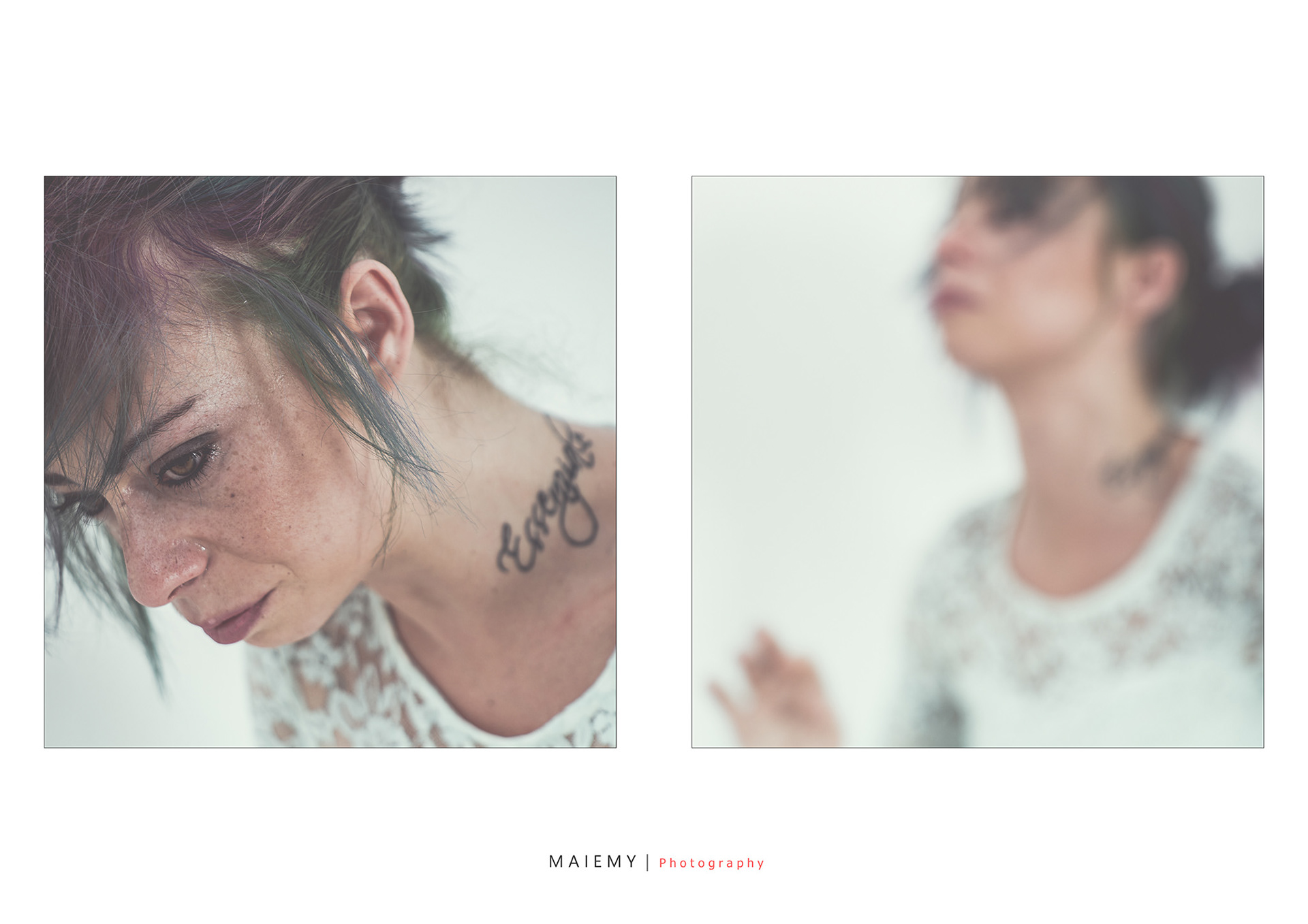 Questo cambiamento ha imposto una nuova visione del progetto che stavamo realizzando. Decisi che non potevo essere solo spettatore ma anche parte integrante del progetto. In maniera quasi inconscia iniziai ad alternare scatti nitidi con scatti volutamente portati fuori fuoco. Volevo che le persone che avrebbero guardato questo racconto avessero entrambi i punti di vista della performance di Sara; il suo dolore e il mio. Due punti di vista diversi dello stesso momento, come due pensieri sovrapposti e due sofferenze che diventavano una. Fu durante quella sessione di scatti che feci mio il pensiero che ogni dolore e una parte interiore della personalità che emerge dal profondo del nostro Io. Ogni dolore è uguale e diverso nello stesso momento. Quel pomeriggio tutto era in sintonia e risuonava nel profondo.